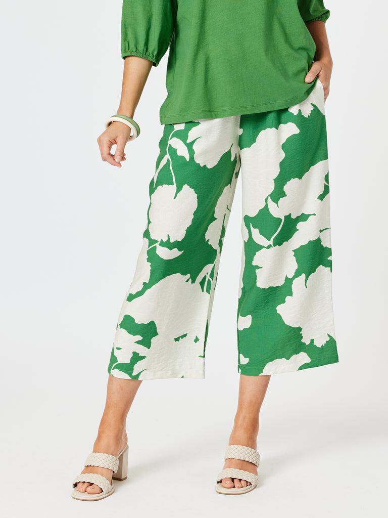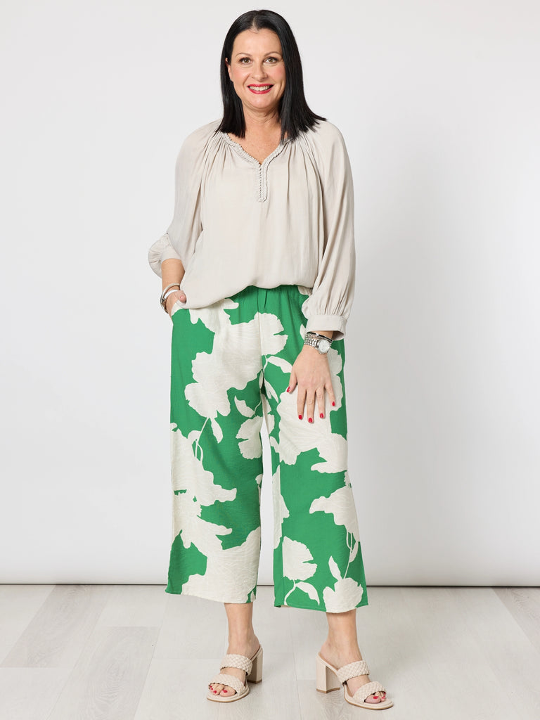 Barcelona Floral Print Wide Leg Pant - Elm Natural