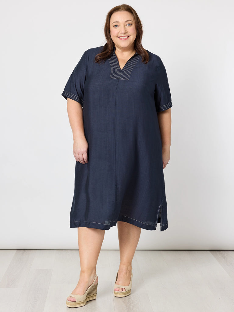Top Stitch Detail Dress - Navy