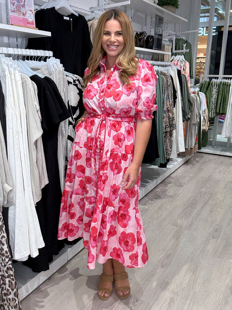 - Bring a fresh burst of colour to your wardrobe with the Pink Poppies Print Button Dress.