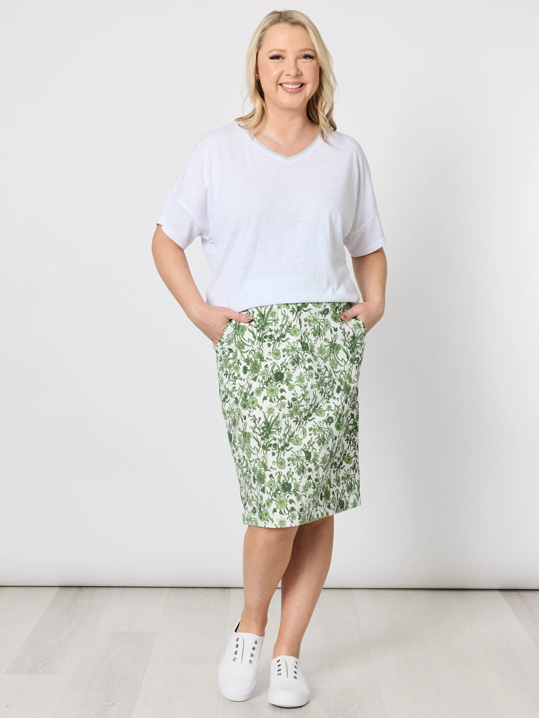 Alexandria Floral Print Skirt - Basil White