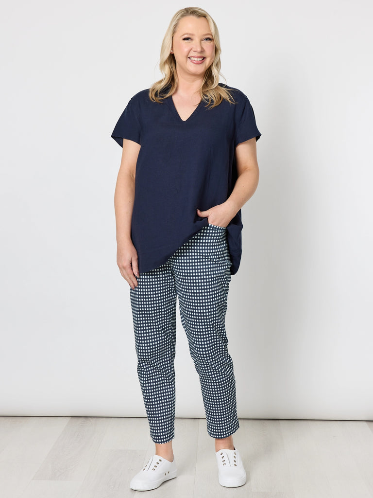 Alexis Gingham Print Pant - Navy