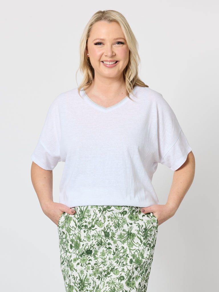 Bella V Neck Tee - White