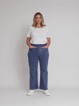 Carpenter Stretch Wide Leg Pull On Denim Jean - Washed Denim