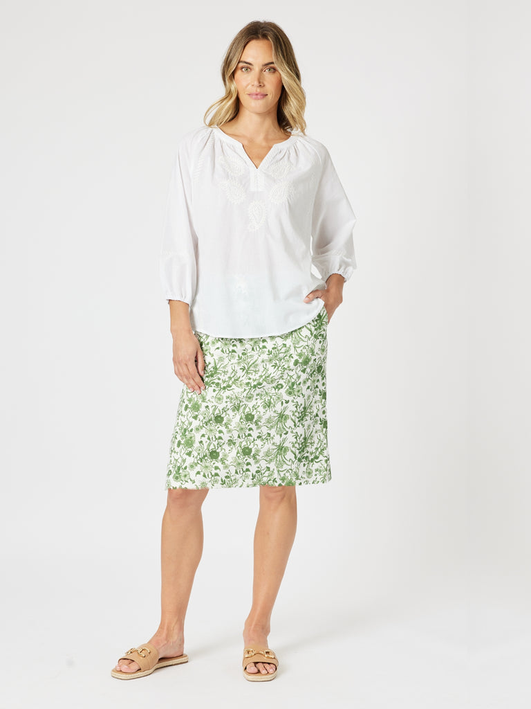 - Crafted from breathable, lightweight cotton, this top features paisley inspired tonal embroidery across the front, adding subtle texture and detail.