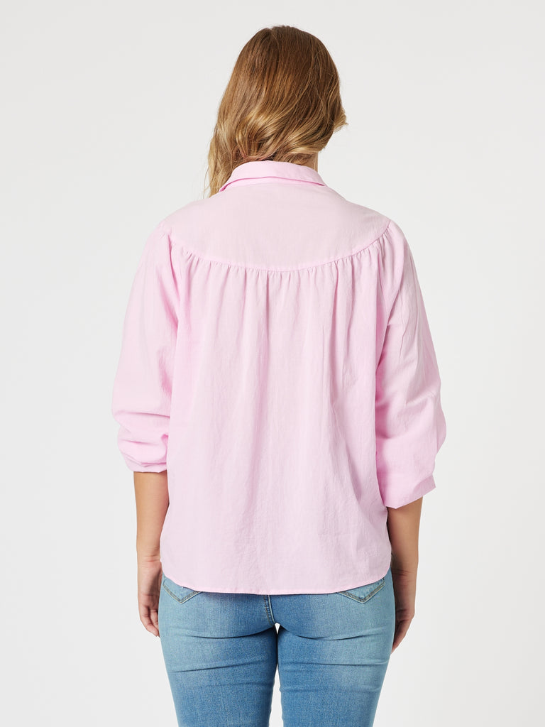 - Subtle gathers at the yoke add a touch of femininity, while the contrast crayon stitching along the placket brings a fun, distinctive detail.