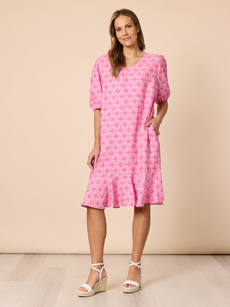 Floral Art Print Dress - Pink