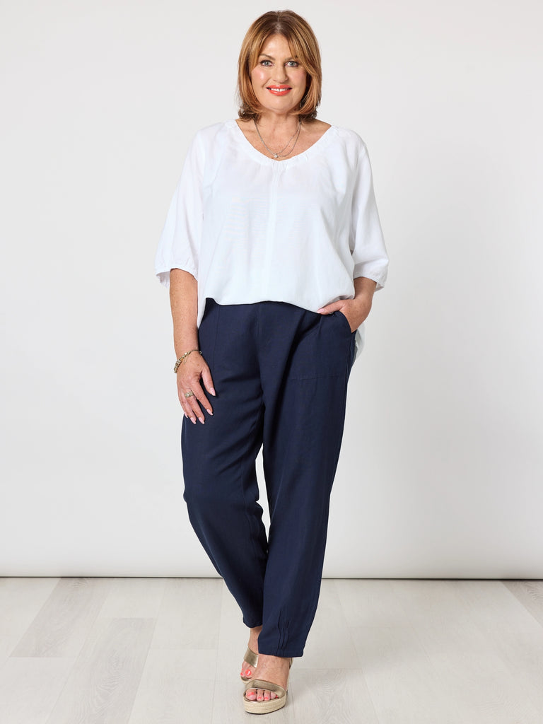 - Relaxed, breathable, and effortlessly polished - the Lino V-Neck Top is crafted from a lightweight linen blend that’s perfect for warm days and easy layering.