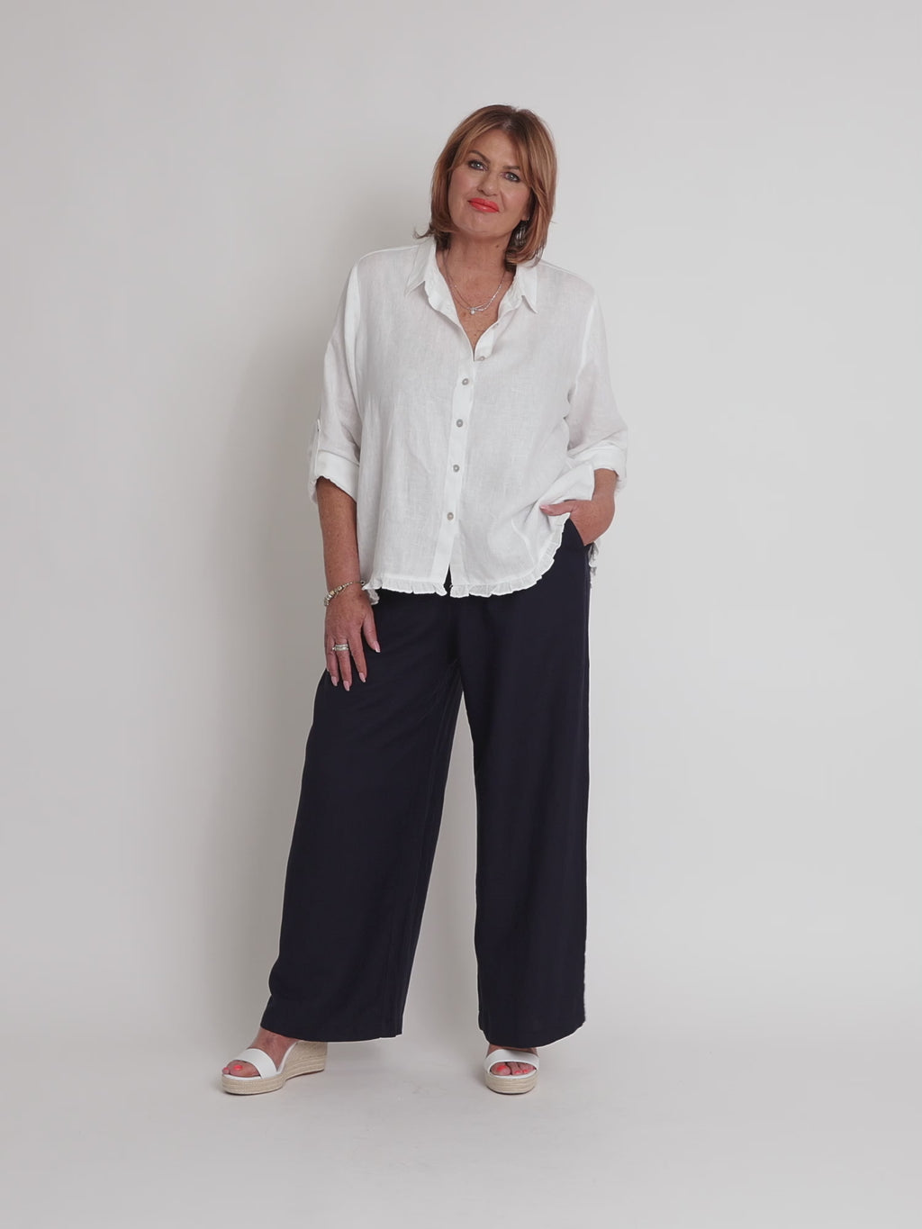 - The Lino Pant is an ankle-length, wide-leg style crafted from a soft and breathable linen blend - perfect for warm days and effortless dressing.