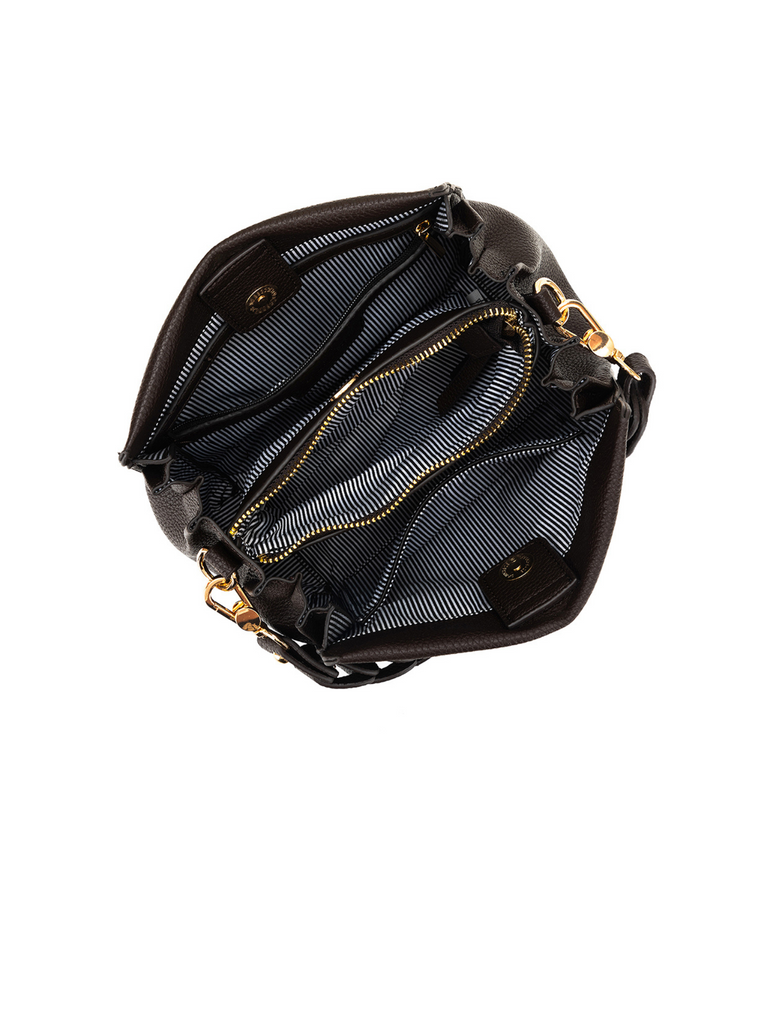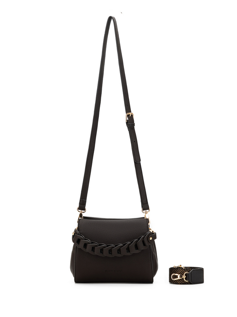 - It comes with a detachable plaited top handle for a statement look, plus two interchangeable straps: a cotton strap for casual wear and a PU strap for a more polished finish.