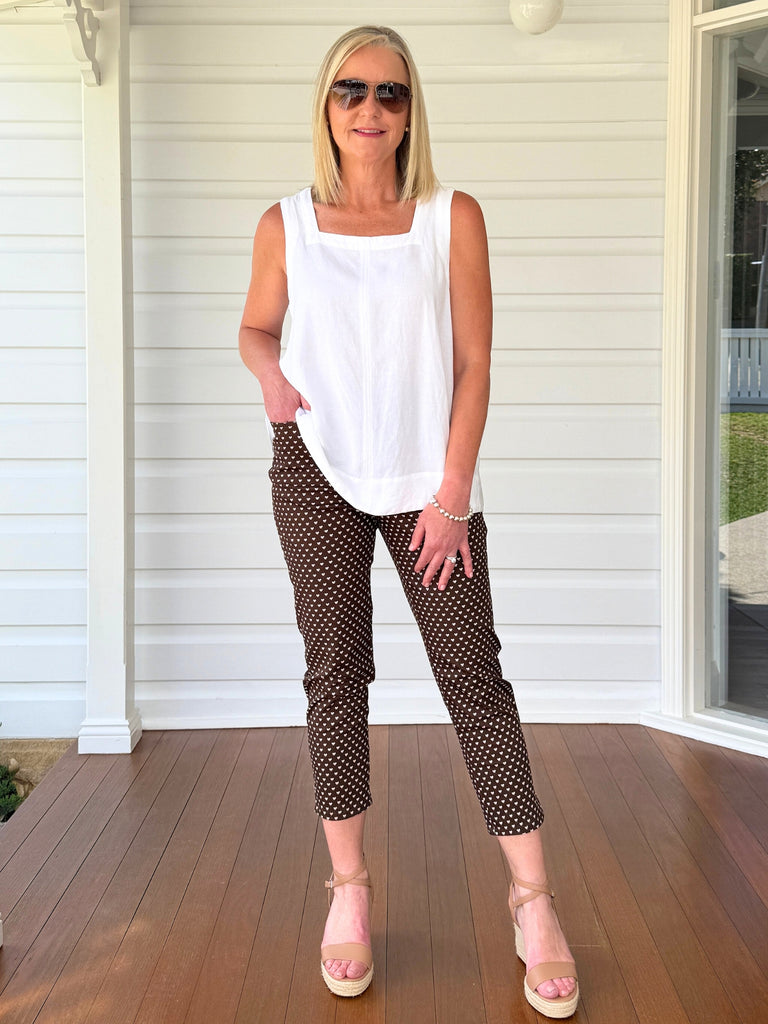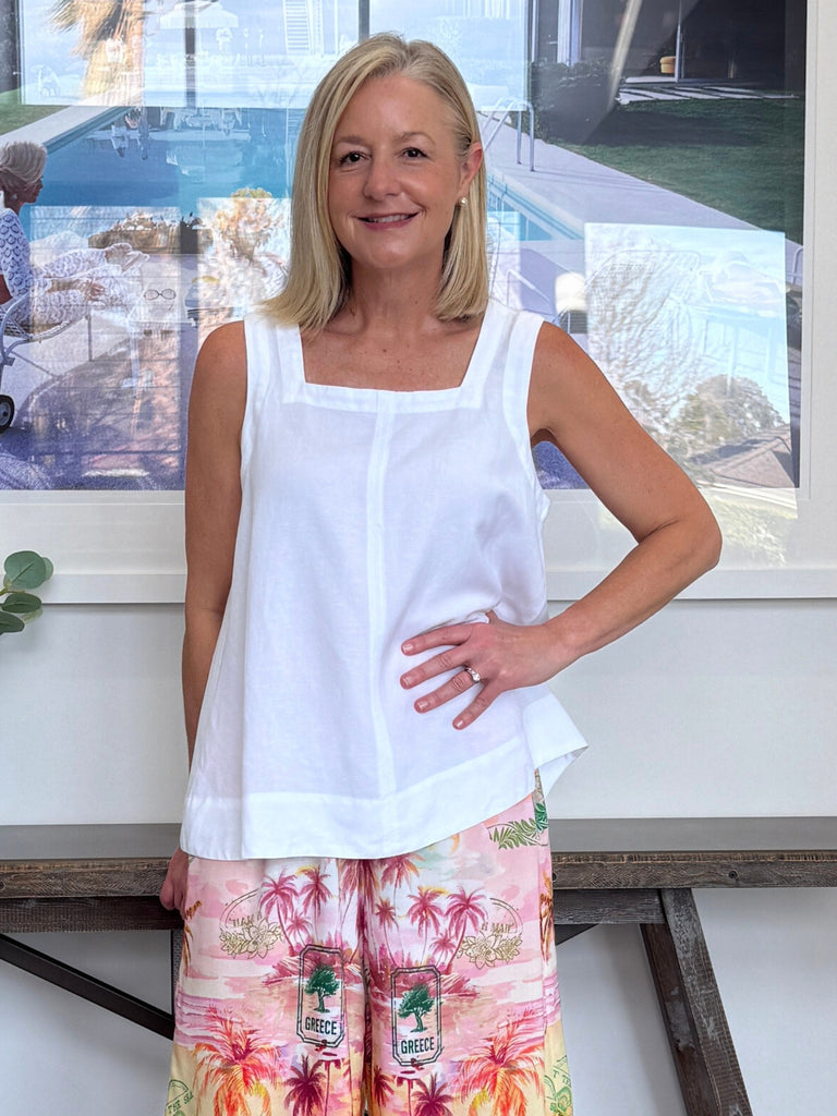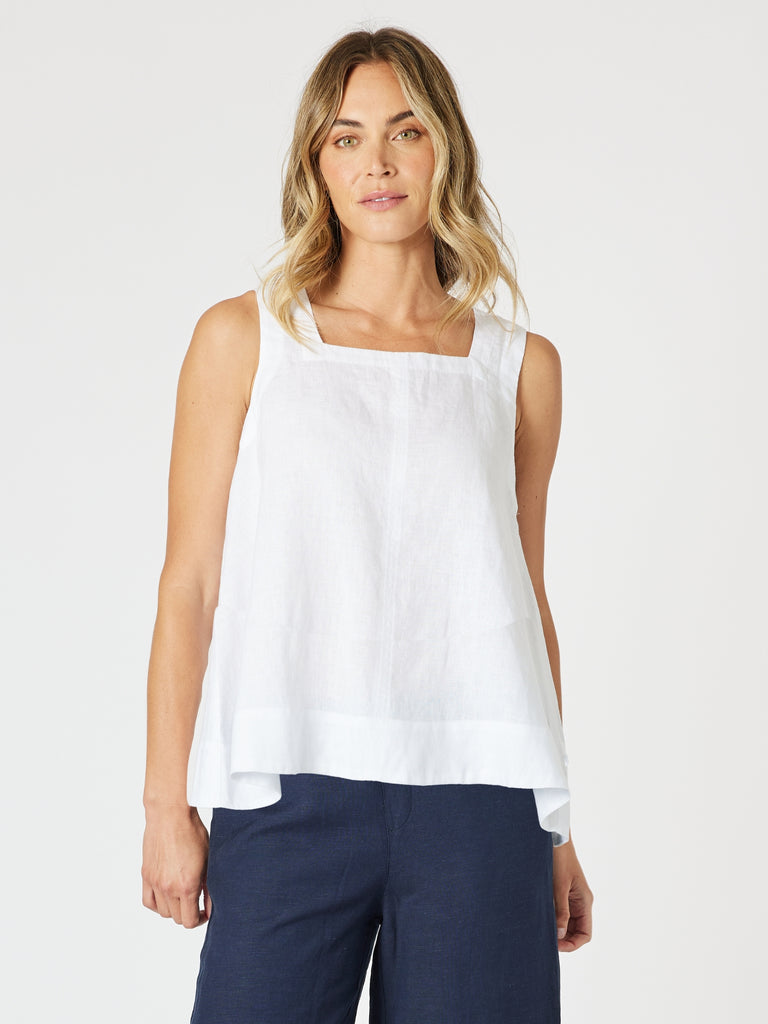 - The Miley Lino Cami is a breezy warm-weather essential, designed with a flowy silhouette and a modern square neckline for a touch of effortless charm.