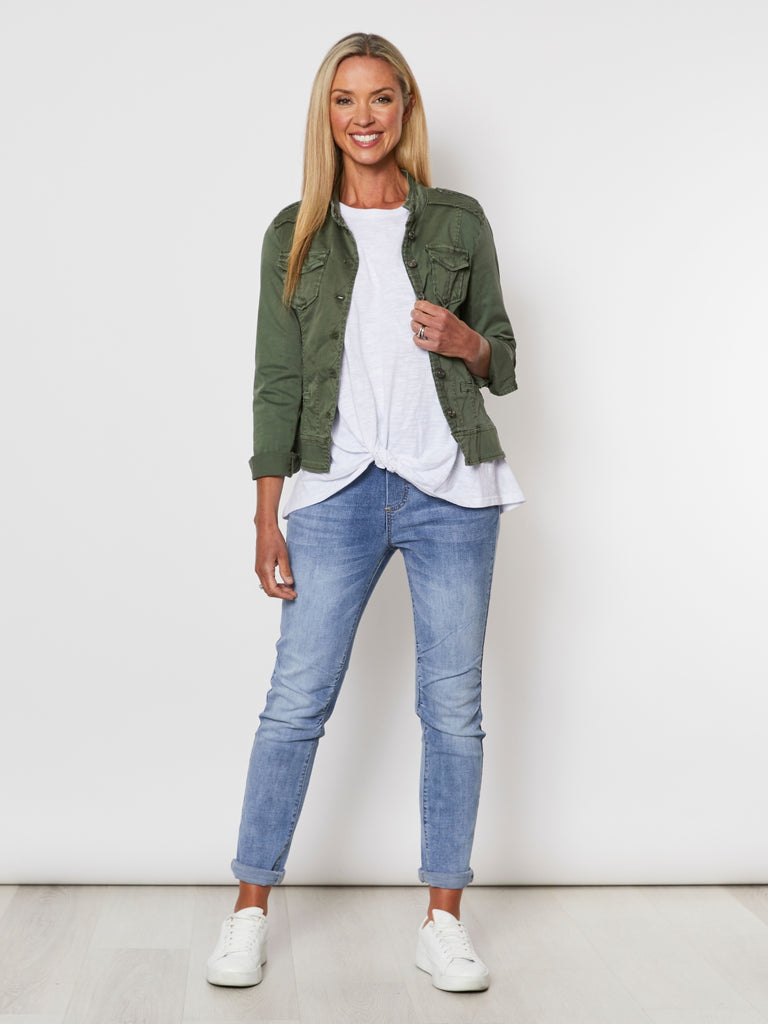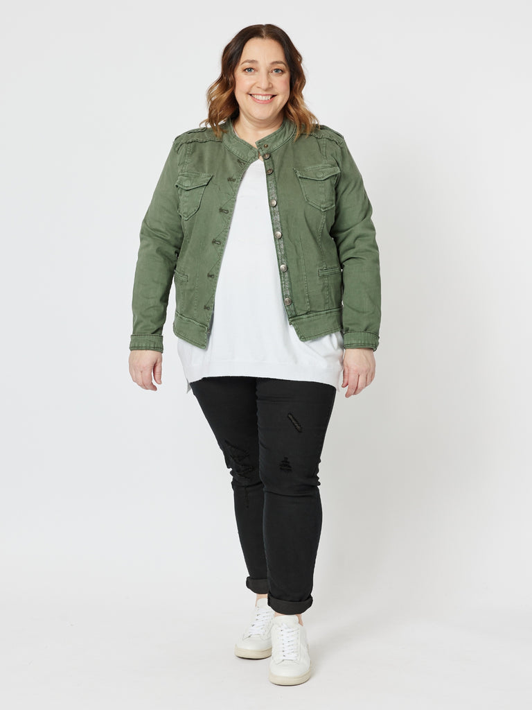 - Sparkle trim detail at the epaulettes & down the centre front placket