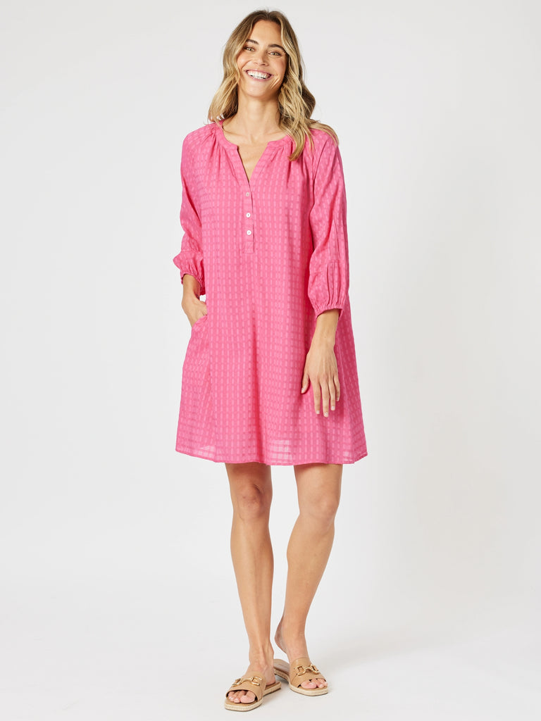 Mykonos Check Dress - Peony