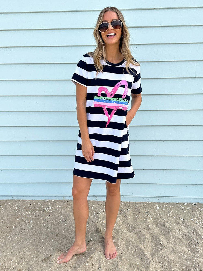 - Ready for the most comfy dress you'll ever own? The Heart stripe dress by Threadz is made from a terry cotton sweat fabric with just the right amount of elastane for stretch and comfort