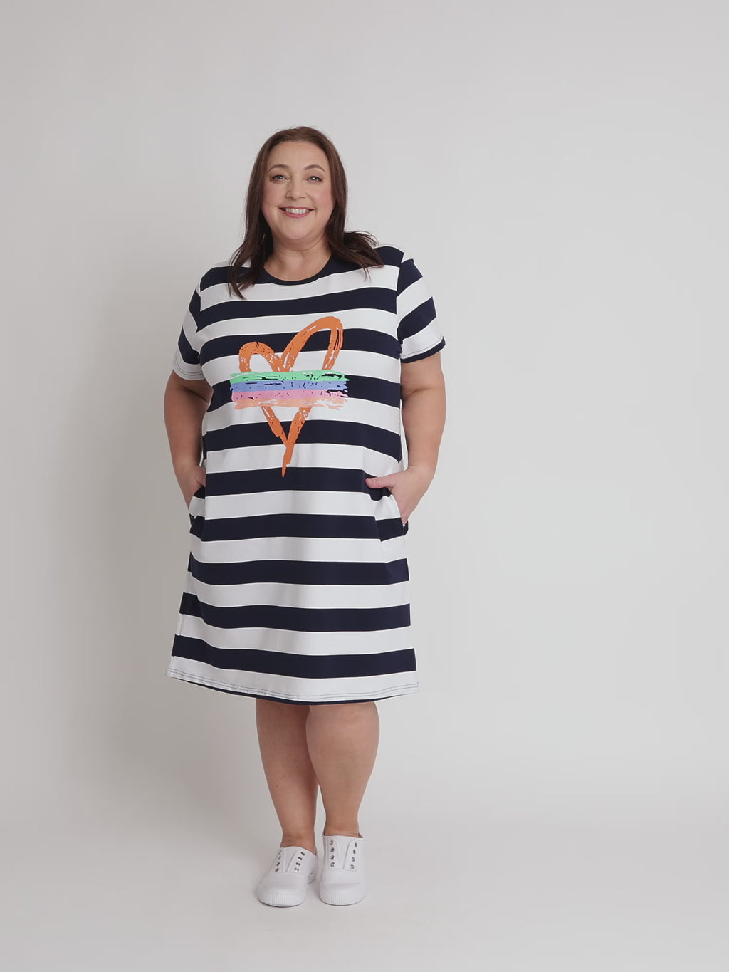 - Our BESTSELLING Heart Stripe Dress in a brand new colour!