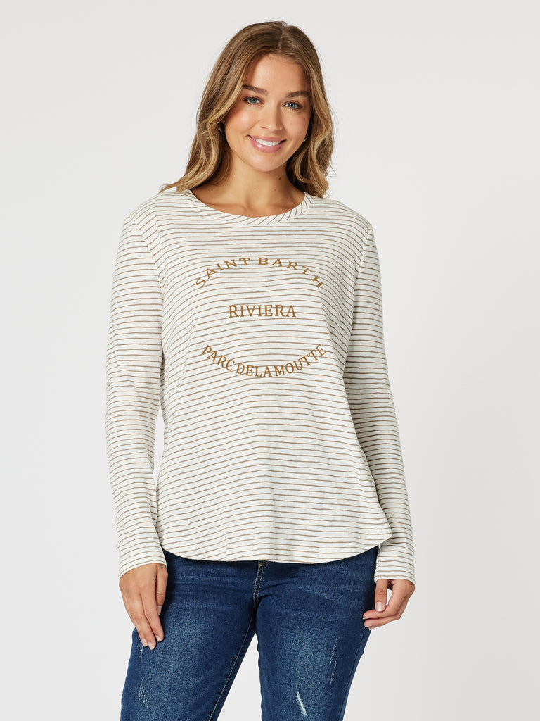 Riviera Long Sleeve Stripe Print Tee - Natural/White