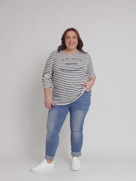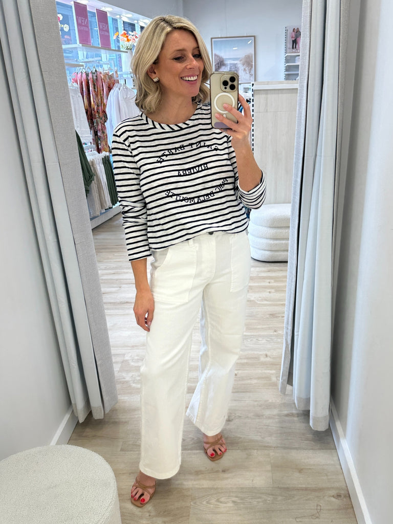Riviera Stripe Print Long Sleeve Tee - Navy/White