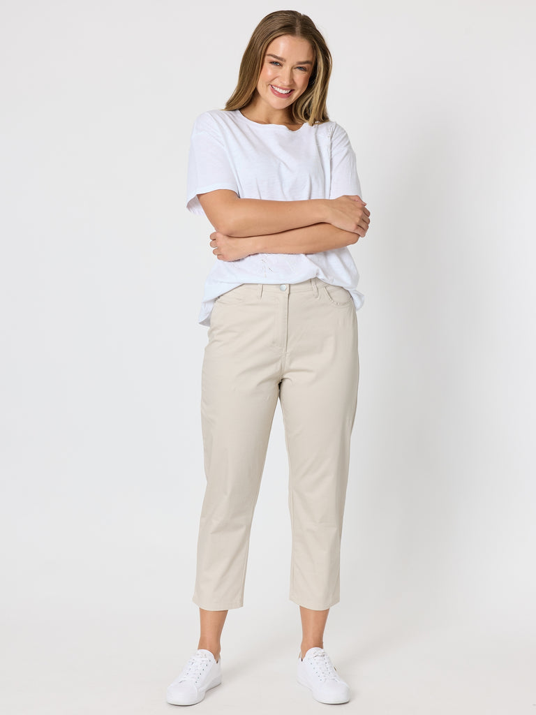 - Belt loops add styling versatility, while the slim leg and 7/8 length make it a flattering option for every day.