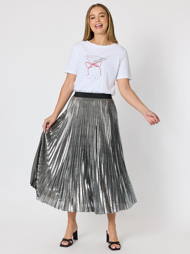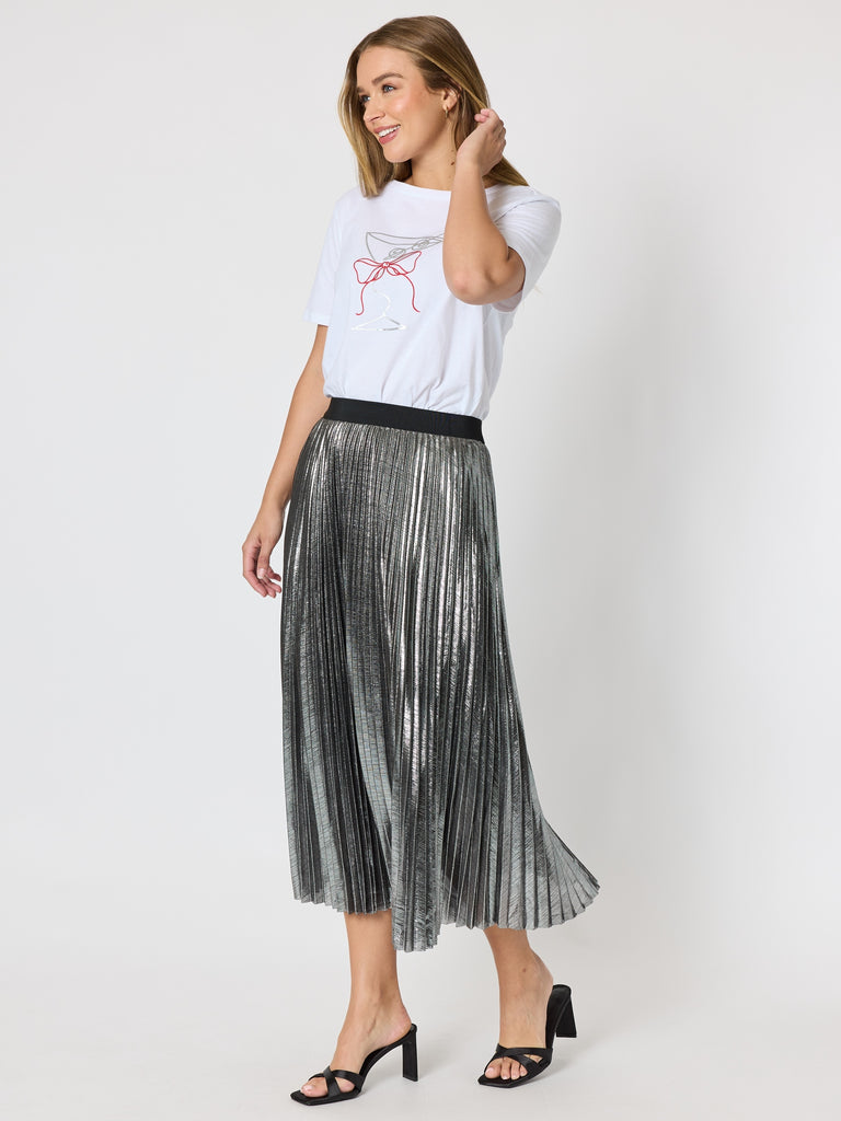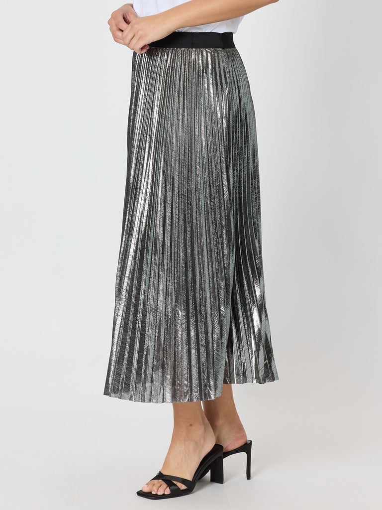 - Add a touch of glamour to your wardrobe with the Shimmer Pleated Skirt.