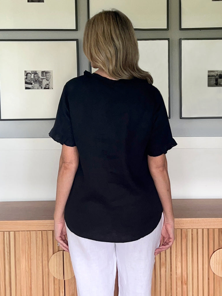 - They say it's all in the detail and our Tiffany Ruffle Linen Short Sleeve Top has the most beautiful ruffle trim detail!