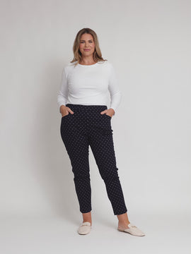 - A cotton pant with just the right amount of stretch to hold you in, you will be stylish and comfortable all day long. You're welcome!