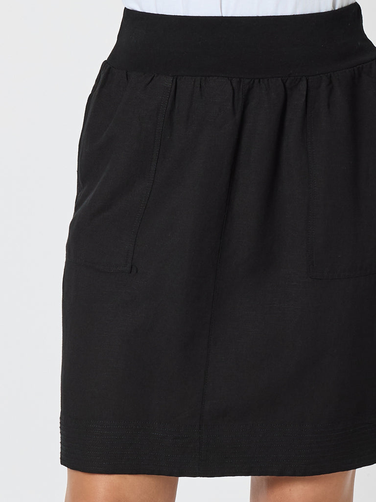 Lino Stitch Hem Detail Skirt - Black