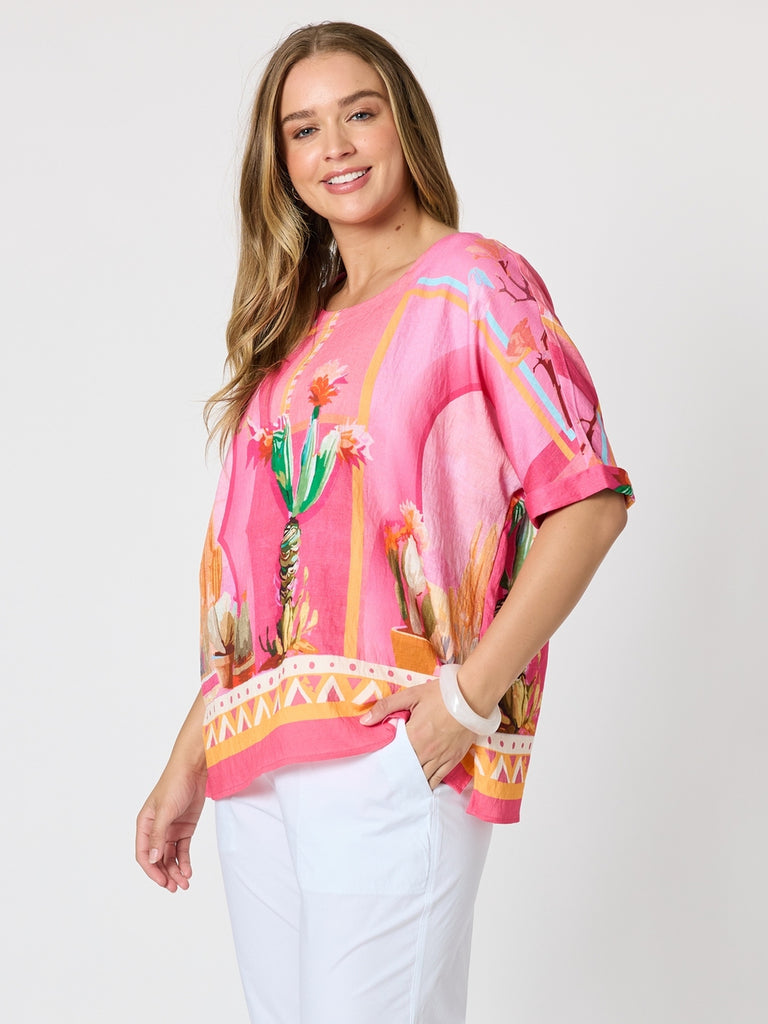 - Inspired by the vibrant hues of desert blooms, the Tulum Shell Top features a soft, flowing fabric and a relaxed fit.