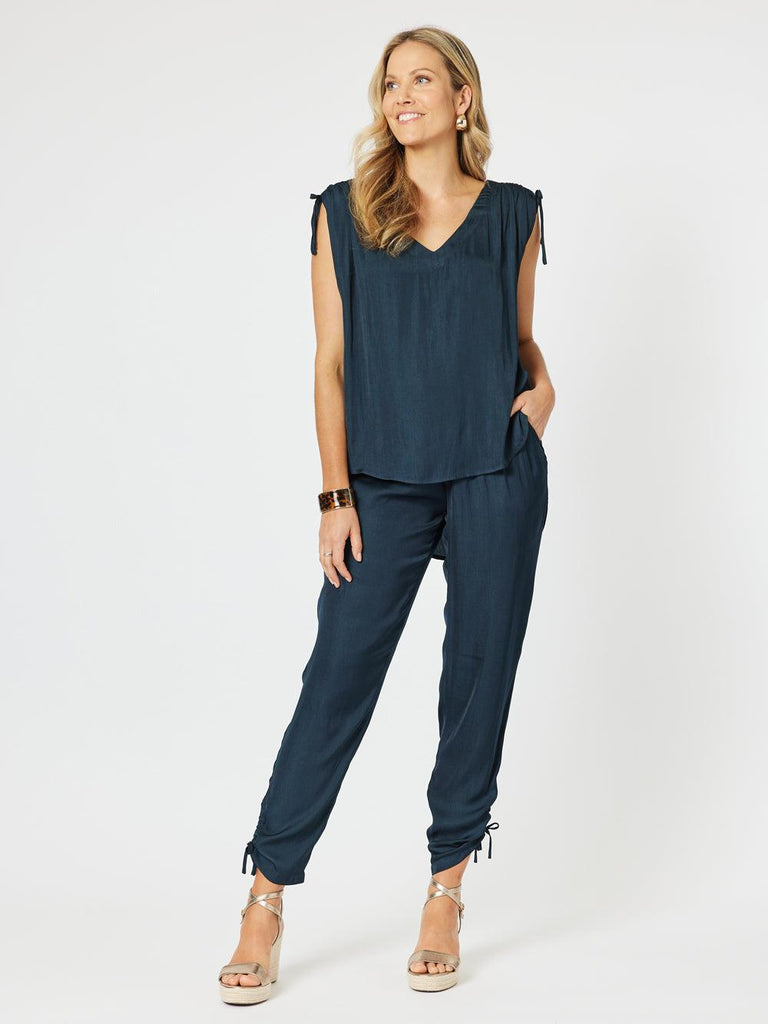 Lux Ruche Tie Pant - Navy